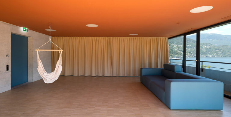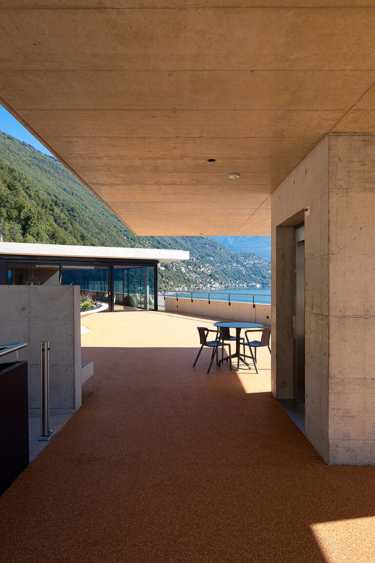 Camere e servizi occupano un unico piano. Questa scelta, oltre a garantire un migliore controllo degli ospiti, consente di compattare il volume costruito e permette una maggiore economicità, oltre che di costruzione, pure d’esercizio. Le camere, inoltre, possono godere della vista lago, dello stesso orientamento ed hanno medesima configurazione.