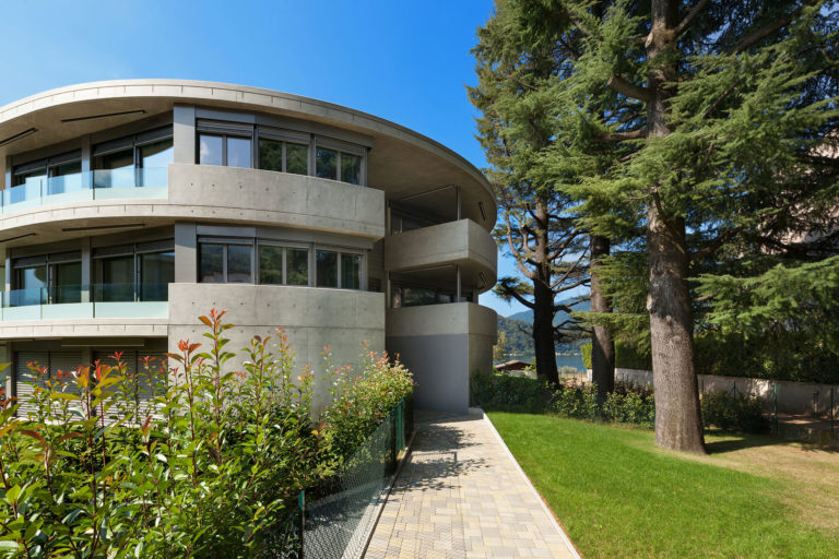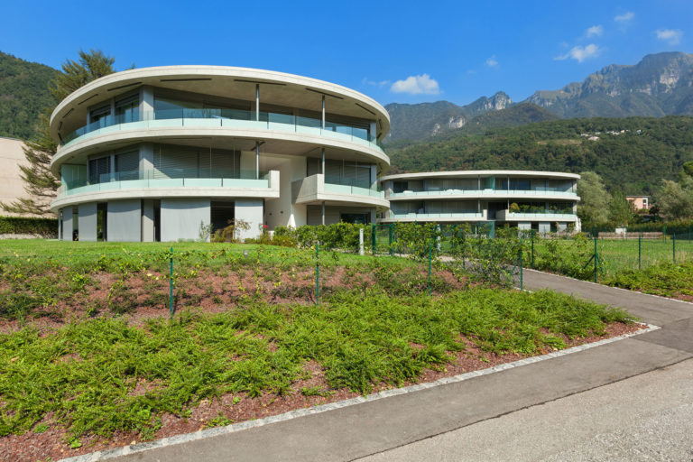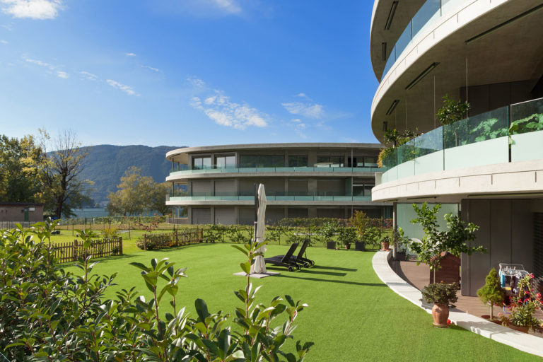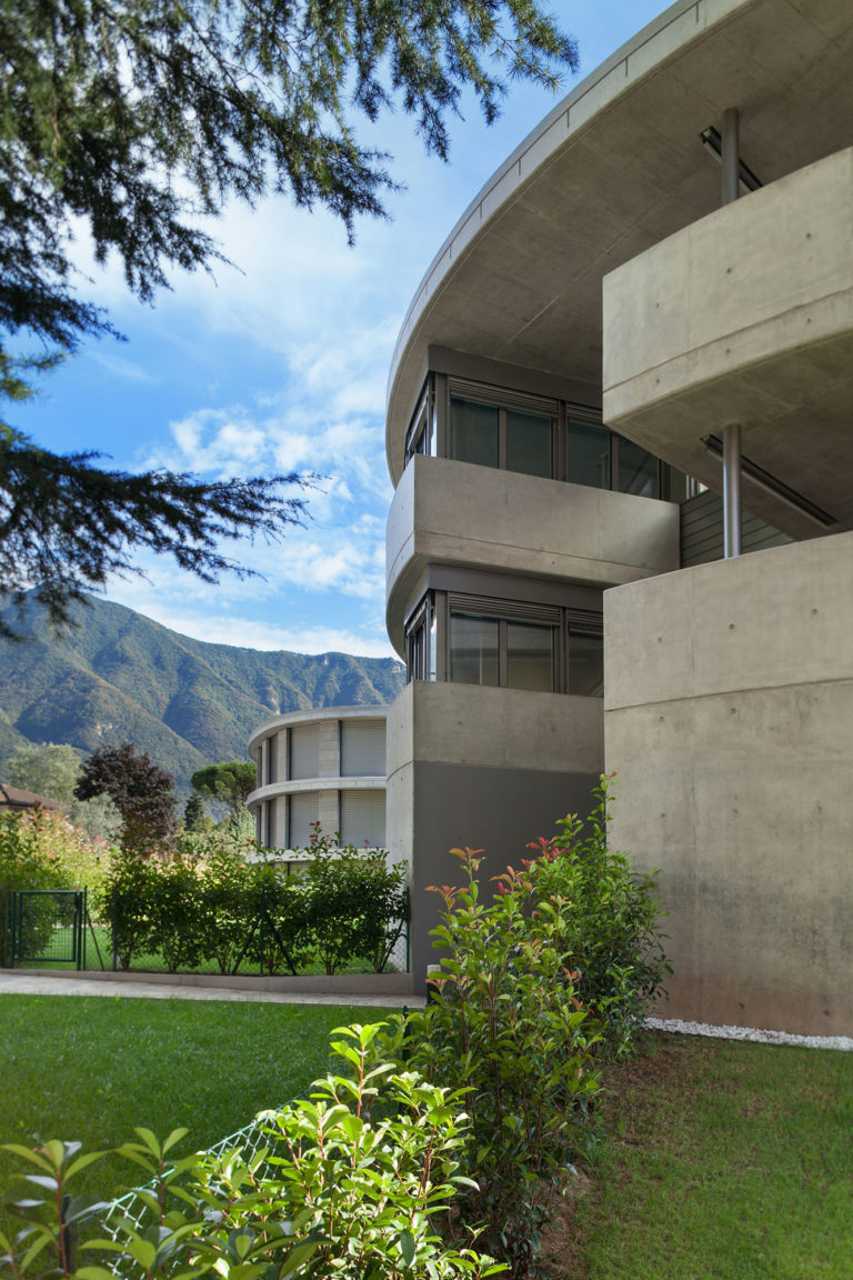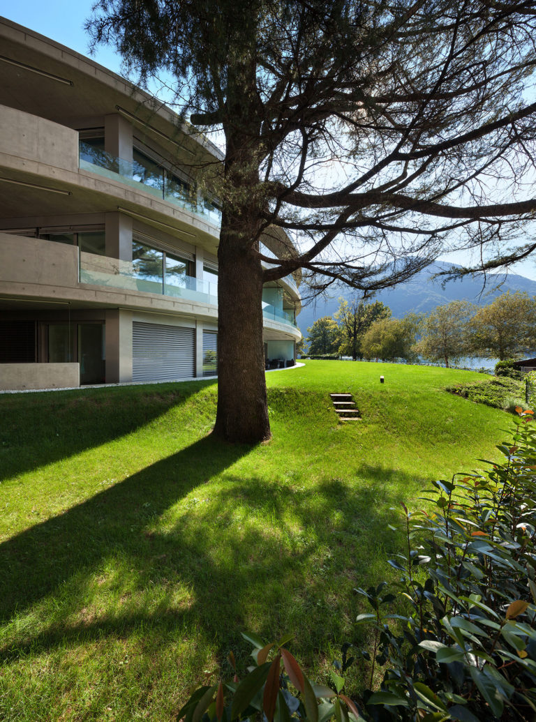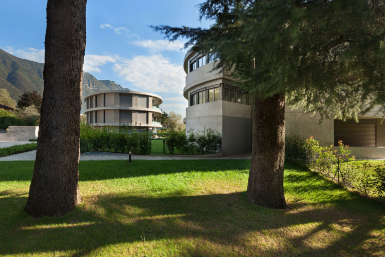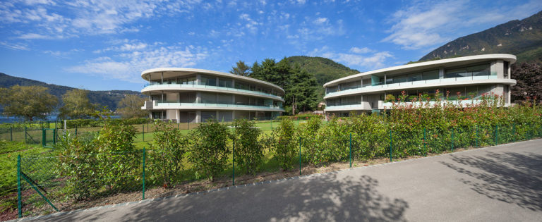 Il terreno che ospita le due palazzine d’abitazione si trova in una posizione straordinaria sul delta del fiume Mara, affacciato sul lago di Lugano.