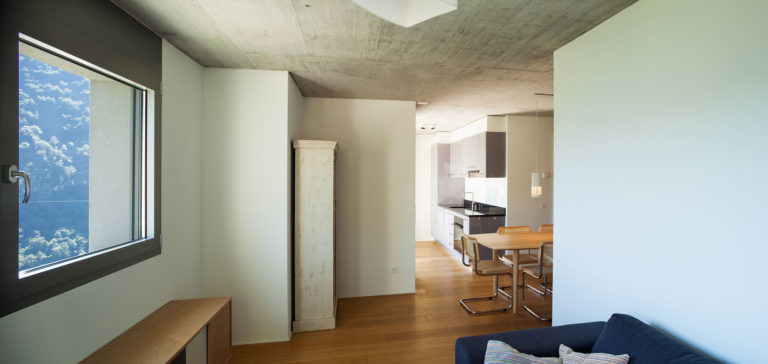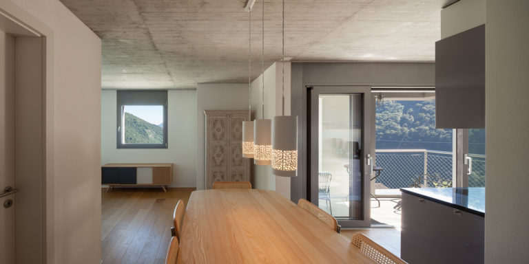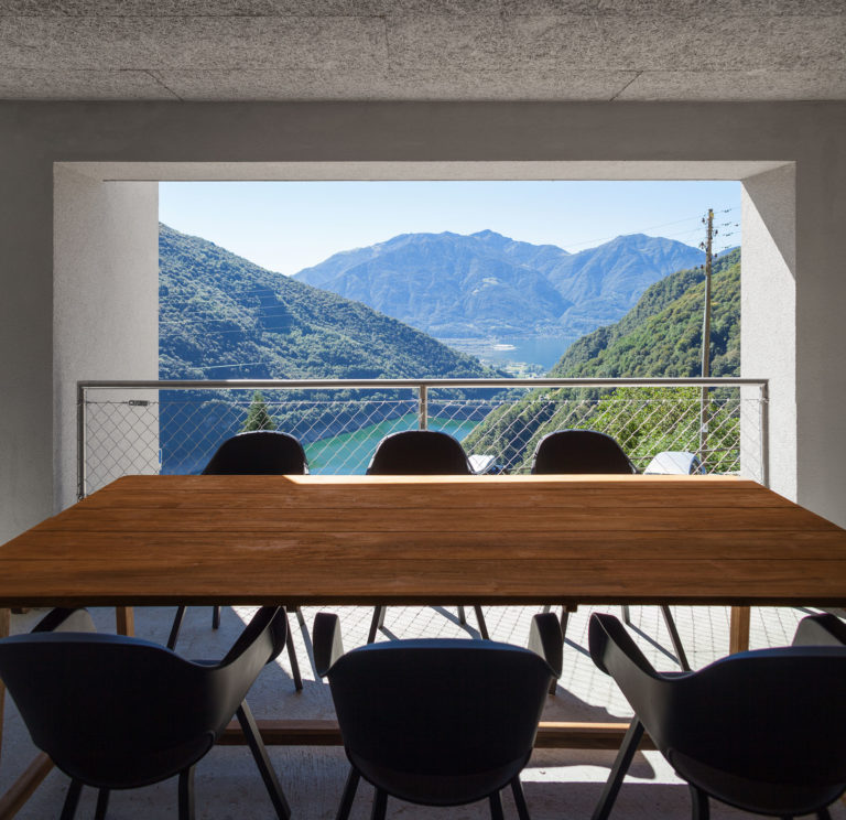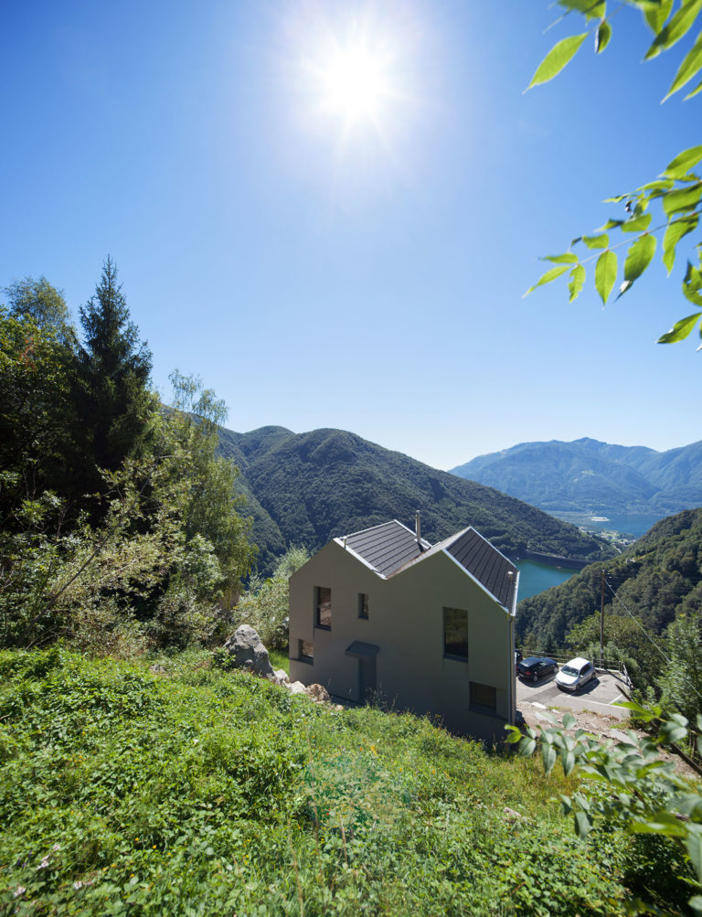 Swisshouse XXV si trova al limite del paese di Mergoscia, lungo il pendio dove il terreno è molto ripido, più di 45 gradi di inclinazione, per questo si ha l’impressione di volare sopra la campagna e la vista si perde sopra la “diga della Valle Verzasca” e nella circostante vegetazione ricca di boschi.