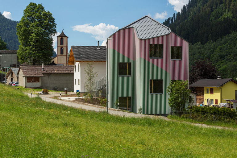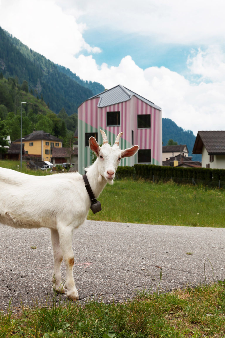 Swiss House si pone spazialmente lungo una linea di volumi di case patrizie che formano un agglomerato attorno alla chiesa del villaggio. Con il nuovo volume si sottolinea questo asse sia in modo fisico (ripresa del volume “patrizio”) che concettuale (affermazione di una volontà oltre la nostra permanenza).